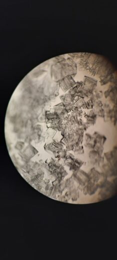 Mokiniai, dirbdami su skirtingomis cheminėmis medžiagomis, užaugino mikrokristalus ir apžiūrėjo juos mikroskopu. Stebėjo kristalų augimą ir nustatė jų augimo greitį. Taip pat pasigamino akmens druskos NaCl heksaedro (kubo) formos popierinį lankstinį ir apskaičiavo, kiek natrio chlorido (NaCl) atomų sudaro vieną elementariąją gardelę.