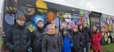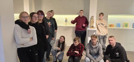 Įgyvendinant TŪM projekto „Vizualinių menų“ programą, spalio 22 dieną 8 b klasės mokiniams kūrybinės veiklos persikėlė į Akmenės krašto muziejų: susipažįstant su ekspozicijomis, klausantis, analizuojant ir vertinant šios įstaigos renginių kuratorės Sandros Saliamanienės įdomiai pateiktą informaciją apie eksponatus, papildytą istorijomis ir praktiškai prisiliečiant prie ekspozicijų.