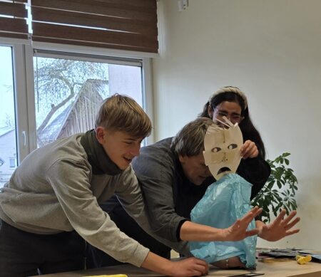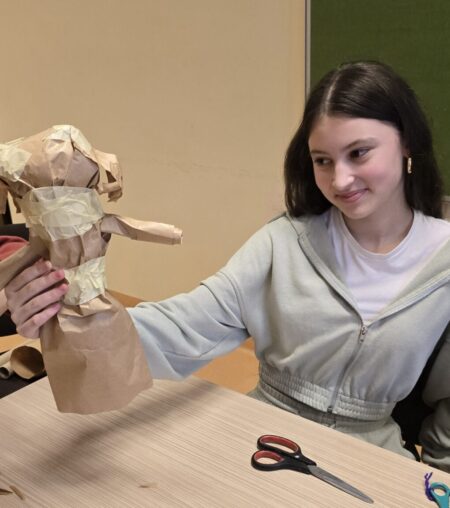 Stalo teatro direktorės Saulės Degutytės – Šiekštelienės edukacija mano mokiniams praplėtė suvokimą ne tik apie teatro sampratą, scenografiją, bet ir padėjo įgyti patirties popieriaus plastikoje. Pasidalijimas apie kūrybinę veiklą, kuriamus personažus, improvizacijų galimybes, praktiškai prisiliečiant prie proceso, bendraujant ir bendradarbiaujant, sekant istoriją ir ją bandant įprasminti sukurtos lėlės pagalba. Atrodo reikia tiek nedaug ir paprasti daiktai, kurie mus supa, gali tapti pagrindiniais veikėjais ir papasakoti mums apie tai, kas taip aktualu, perteikiant mūsų viltis, patirtis ir kuriant svajones.