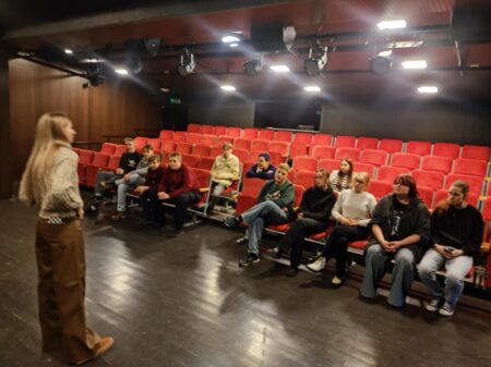 Kiekviena meno šaka – muzika, dailė ar literatūra – turi reikšmingų tarpusavio sąsajų, papildančių viena kitą, leidžiančių atskleisti vis naujų bruožų ir skatinanti žavėtis kūrėjo sumanymo rezultatu. Teatro menas – vienas ryškiausių meno sintezės pavyzdžių: kai kuriamas veikėjo portretas apmąstant smulkmenas nuo charakterio bruožų iki kostiumo detalių; siužeto linijos perteikimo, įspūdį sustiprinant, rodos, tokiais paprastais kasdieniais dalykais ir jų transformacijomis scenografijos mene. Kelmės mažojo teatro direktorė Sandra Zakarienė pakvietė pokalbiui į teatro erdvę. Pokalbis dėliojosi nuo pasirinktų studijų iki profesinės veiklos, apžvelgiant užkulisius ir pristatant režisuojamų pastatymų subtilybes. Kamerinė erdvė, kurianti betarpišką bendravimą su žiūrovu ir pažintis su šio teatro vadove mokiniams padėjo kiek kitaip suvokti šią sudėtingą meno šaką.