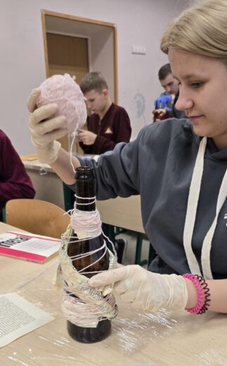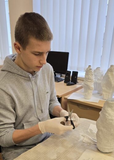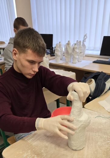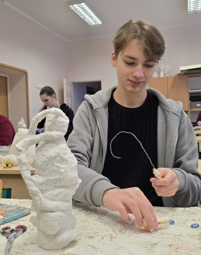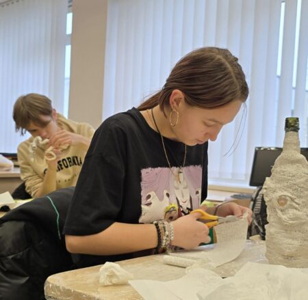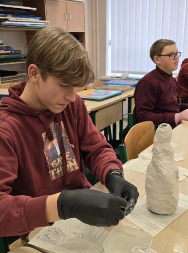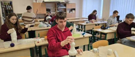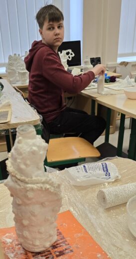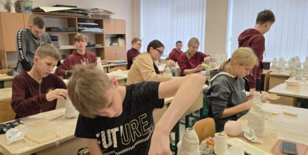 Pažintį su šios technikos galimybėmis pradėjo I a gimnazijos klasės mokiniai sausio 31 dieną, vasario 7 dieną savo galimybes išbandė 8 b klasės jaunieji skulptoriai, o I b gimnazijos mokinius kūrybinės dirbtuvės pakvietė vasario 10 diena ir tik 8 a klasės jauniesiems menininkams kūrybinės veiklos nusikėlė į pirmąsias pavasario dienas – kovo 3 dieną.