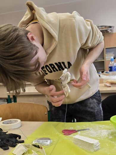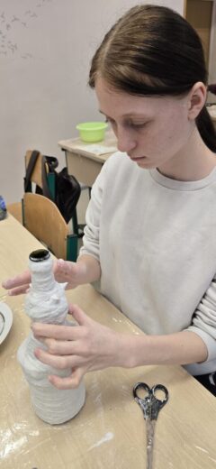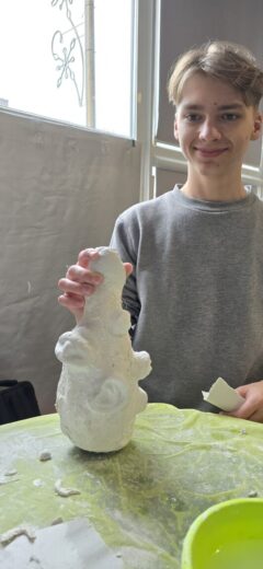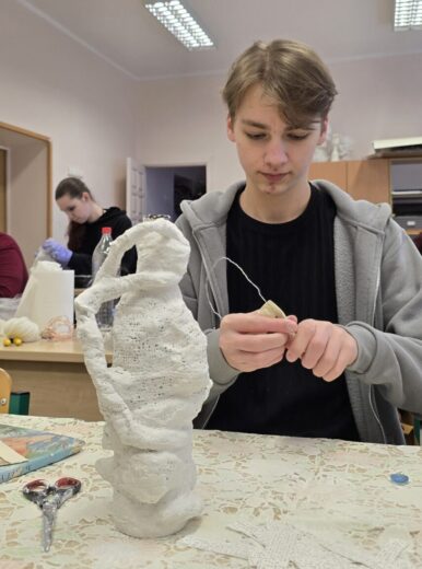 Dar viena naujai atrasta galimybė į meną pažiūrėti kitaip – konstruojant ir lipdant pirmąsias skulptūras gipsinio tvarsčio pagalba.