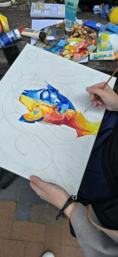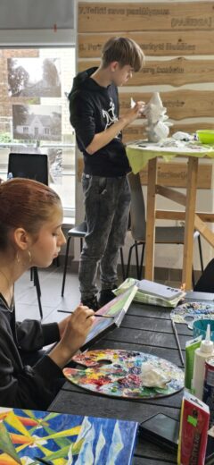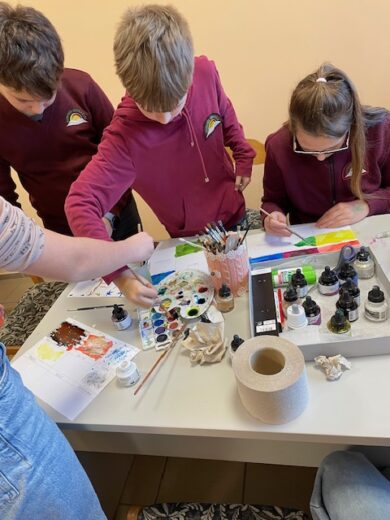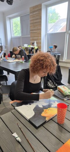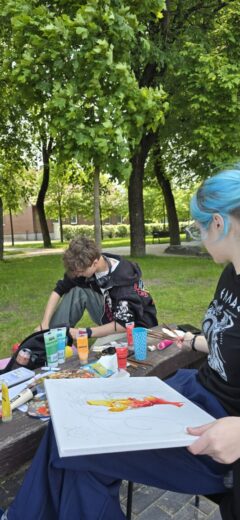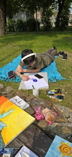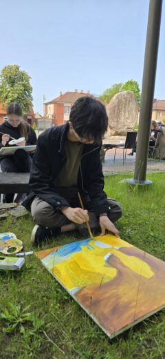 Akimirkos iš dailės plenero (2024-09-24), įgyvendinat Tūkstantmečio mokyklos projekto Vizualinių menų programos etapą.