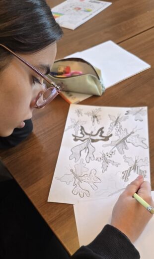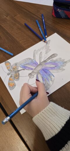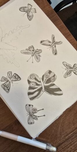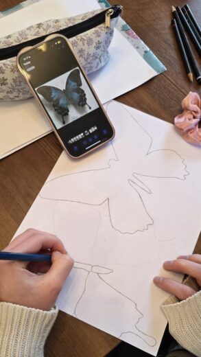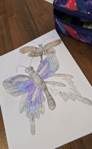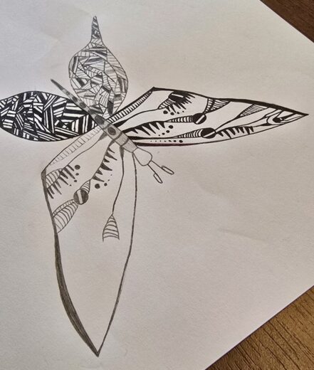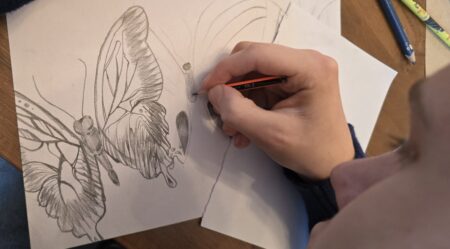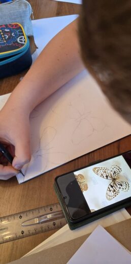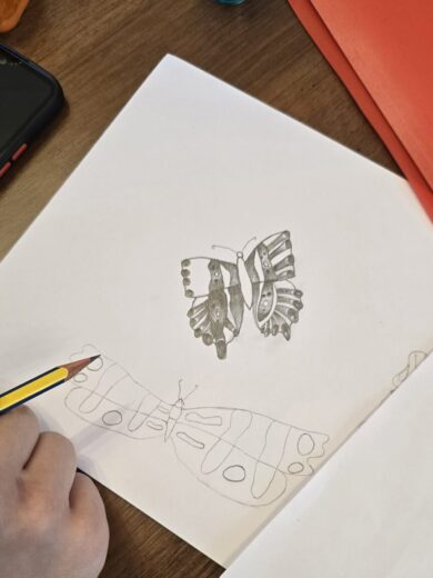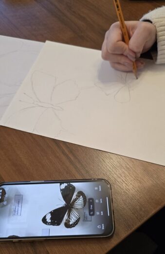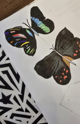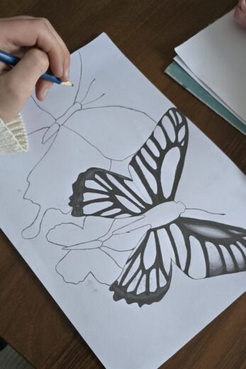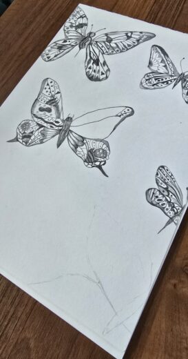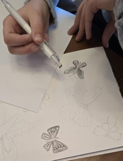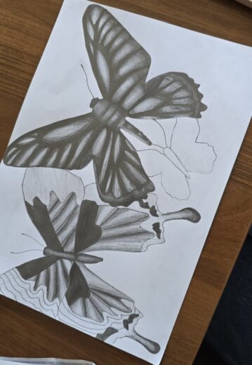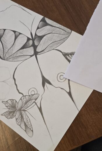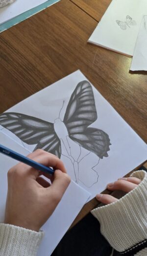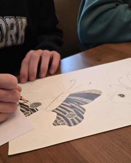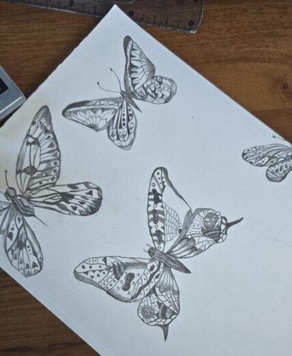 Pieštukas, rodos, tokia paprasta, įprasta priemonė, o kiek ji turi raiškos galimybių: linijų įmantrumo, tonų ir pustonių, gebėjimo sukurti pasakiškus ornamentų derinius, užpildyti lapo plokštumą įmantriomis formomis. Kiekvienas išvydo, įsiminė ir savaip bandė interpretuoti stebėtą Boriso Izambeko dieninių drugių kolekciją. Mokinių piešimo lapuose sugulė simetriškos sparnelių formos, užpildytos stilizuotais raštų motyvais, kontrastingais ornamentų deriniais, vis grįžtant prie kolekcijos ir iš naujo atrandant nepastebėtą, dar neįsimintą.