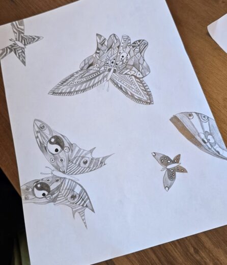 Mano mokinių kūriniai kviečia prisiliesti prie vasaros prisiminimų drugelių formose ir raštų deriniuose, ieškoti kelio į save suvokiant pasirinkimų prasmę ir tikint, kad rasti atsakymai visada ves mus link tikslo, įvertinant tobulumą paprastuose dalykuose ir tikint, kad po tamsos visada bus šviesa ir tai, ką slepia šešėliai, įgaus aiškias formas, reikia tik PATIKĖTI, PASITIKĖTI tais, kurie šalia ir TIKĖTI SAVIMI.