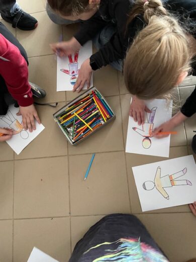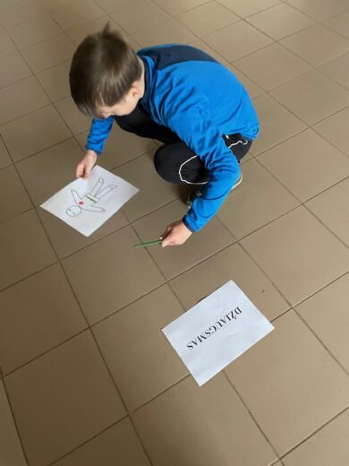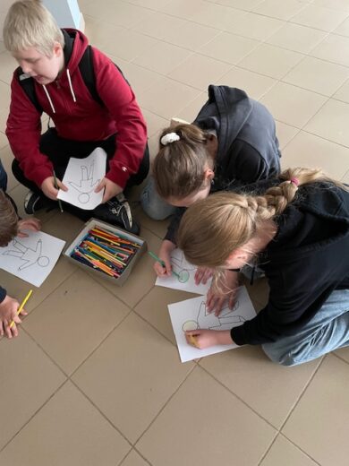 Numatytoje TŪM vizualinių jausmų programoje mokomės per terapines priemones pažinti save. Kurdami, žaisdami, piešdami bandome suprasti savo emocijas, kalbame kaip su jomis tvarkytis, ką padaryti dėl savęs, kad pasijausčiau gerai. Nusipiešėme žmogeliuką ir su juo keliavome per 6 jausmų stoteles. Bandėme vizualizuodami prisiminti, savo jausmus, įsivaizduoti kokios jie spalvos ir kur gyvena. Pasirodo, kad jie gyvena mūsų kūne. Jausmai buvo šie: džiaugsmas, nerimas, liūdesys, ramybė, pyktis baimė. Patalpinę jausmus žmogeliuko kūne vaikai darė apibendrinimus, kokius jausmus patiria dažniausiai. Kiek įdomių dalykų sužinojau ir labai pasidžiaugiau. Vaikai tikrai žino, kaip gali pagerinti savo jauseną, kaip pailsėti, atsipalaiduoti. Taigi, vaikai sakė, kad susitiks su draugais, išgers kakavos, pamiegos, pasikalbės rimtai su broliu, pažiūrės filmą, paskaitys knygą, eis žvejoti, eis pasivaikščioti, nueis 5km, suvalgys kažką skanaus, eis pas babą, keps vaflius, žais žaidimus, pieš, patinginiaus, miegos pas draugę, eis pas pusbrolį. Taigi, pasinaudokime visi šiuo sąrašu, gal ir mums, kas nors tiks. Kaip faina pvz. nueiti pas babą, kepti vaflius, išgerti kakavos ir pasilikti miegoti…