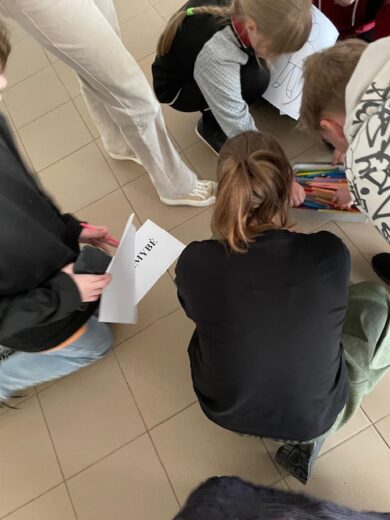 Kalbėti apie savo jausmus – nelengva. To mokėmės su penktokais per TŪM vaizduotės lavinimo pratybas. Bandėme priskirti  jausmui spalvą, garsą, kvapą, skonį ir vaizdą, žodžiu, savo pojūčius, kuriais pažįstame pasaulį. Kai kurie vaikai įvardino, kad labai keista užduotis, negi liūdesys gali turėti skonį ar kvapą, arba baimė – garsą ar spalvą. Daug atradimų padarėme užsiėmimų metu: baimė kai kam valerijonų skonio, benzino kvapo, pyktis pilnas roko muzikos garsų ir prakaito kvapo, na o vienam  liūdesys neturi garso – jis tylus,  o kitam tai bangų garsas ir jūros kvapas. Užsiėmimų metu vaikai atsipalaidavo ir drąsiai ieškojo žodžių, kuriais galėtų įvardinti savo jausmus.  Antras užsiėmimas – jausmų liejimas akvarele ant popieriaus. Užduotis vaikams labai patiko kiekvienas ieškojo savo spalvos, maišė jas, kad galėtų išreikšti savo jausmą. Išeinant iš užsiėmimo vienas berniukas, kuris buvo viskuo nepatenkintas, pasakė, kad buvo įdomu ir jis suprato, kad jo džiaugsmo ir nusiraminimo spalva yra žalia. Kažką sužinoti ir suprasti apie save yra pakankamai svarbu. Ypač 5 klasėje.