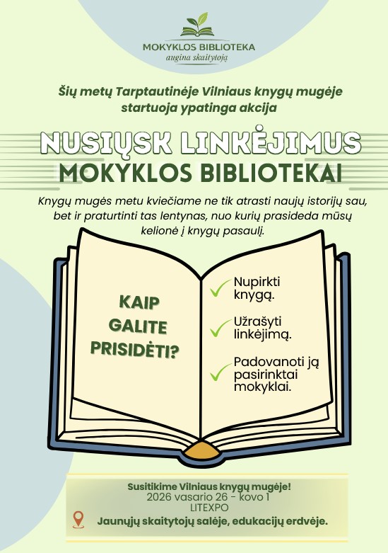 Prisijunk prie gražios iniciatyvos – nupirk knygą, užrašyk linkėjimą ir padovanok ją savo mokyklos bibliotekai.