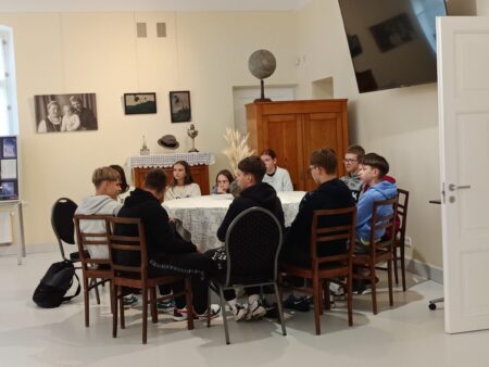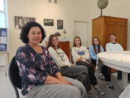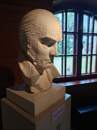 Spalis – Daukanto gimimo mėnuo, šį rudenį 232-asis. Žinodami, kad jau 95-erius metus įtaigiausia, meniškiausia Vinco Grybo sukurtoji Daukanto skulptūra stovi Papilėje, atsigręžėme į patį skulptorių, gimusį to paties mėnesio 3 dieną prieš 135-erius metus: tad dar rugsėjį Akmenės gimnazijos aštuntokai pagal TŪM programą keliavo į Jurbarką, į Vinco Grybo dirbtuves ir muziejų. Čia iš vienintelio skulptoriaus sūnaus Gedimino muziejininkės pareigą perėmusi jo dukra Rasa Grybaitė, taip pat menininkė, VDA aspirantė. Ji buvo mums tą dieną ir ekskursijos gidė, pakvietusi prisėsti  prie senelio sumeistrauto stalo, rodė kampą, kuriame sutilpo kuriamo Daukanto skulptūra, o paskui į Papilę per Vokietiją (Berlyne liejo iš bronzos skulptūrą) Daukantas parkeliavo antrąkart. Ir kaip stogastulpio saulutė ilgam žiūrėti – įsižiūrėti.