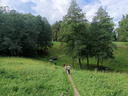 Nuotraukose pirma iš kairės muziejininkė Rasa Grybaitė su akmeniškėmis, muziejaus fragmentai, Sudargo piliakalniai.