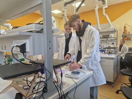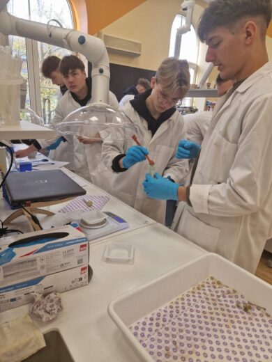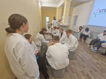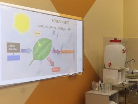 „Fotosintezė fotoelektrai: augalų pigmentų lenktynės“. Pavadinimas, kuris ne vieną turbūt privertė susimąstyti – apie ką čia… To sužinoti lapkričio 5 d. ir vyko 10-11 Akmenės gimnazijos klasių moksleiviai į Šiaulius – STEAM atviros prieigos centrą. Viso turinio ir užsiėmimo esmė – augalų lapai, žiedai, stiebai, šaknų ir vaisių spalvingumas priklauso nuo jų gaminamų pigmentų. Tai ilgai trukusios augalų evoliucijos pasekmės. Viso tiriamojo darbo, kuris susidėjo iš trijų dalių, tikslas – išsiaiškinti, kodėl vieni pigmentai chromatografijos plokštele keliauja greičiau, o kiti yra lėtesni. Trys valandos intensyvaus darbo (svėrimų, matavimų, skaičiavimų, pilstymų ir etc…) praturtino suvokimą apie augalo gebėjimą sugerti saulės šviesos energiją ir ją panaudoti fotosintezei. Na, o jei kažkam iki galo ir liko nesuprastas šis tiriamasis darbas, tai bent jau susipažino su įvairiomis laboratorinėmis priemonėmis…