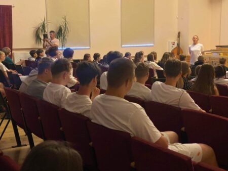 Vėliau pamoka, draugiškai visiems dainuojant „Oi neverk, motušėle!”, persikėlė į Akmenės kultūros namus, kur buvo rodomas filmas „Tarp pilkų debesų”. Po filmo – dienos aptarimas (jei dar ten įmanoma kažką aptarti šalia sukilusio gumulo gerklėj).