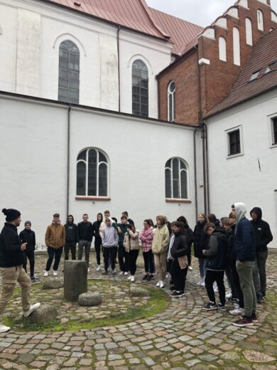 Spalio 20 dieną Ig klasės mokiniai dviem geltonaisiais autobusėliais išjudėjo susipažinti su Jono Karolio Chodkevičiaus miestu. Pažintis su Kretinga prasidėjo saldžiai. Mokiniai dalyvavo edukacinėje programoje „Kretingos dvaro saldaininė“. Joje patys gamino saldainius ir džiaugėsi, kad visai neblogai pavyko. Toliau muziejus svetingai pakvietė aplankyti įspūdingas ekspozicijas Tiškevičių dvaro rūmuose, žiemos sode, vandens malūne, ūkvedžio name (taip taip, viskas viename muziejuje!). Mokiniai smalsiai dairėsi, domėjosi ir už tai buvo pagirti muziejaus darbuotojų. Didžiausią įspūdį paliko pažintis su Kretingos bažnyčia ir vienuolynu (jį galėjome pamatyti tik akies krašteliu). Betarpiškai ekskursiją vedė šmaikštusis gidas Antanas Jonaitis, o devintokai smalsiai apžiūrinėjo įspūdingąsias istorines duris, aukščiausius medinius altorius Lietuvoje, įdėmiai istorijų klausėsi bažnyčios požemiuose ir aikčiojo bažnyčios bokšte. Tikrai įspūdinga, kai įveikus šimtus laiptelių atsiveria kvapą gniaužianti Kretingos panorama… Visko apibendrinimas įvyko Palangos pajūryje. Juokavome, kad ant Kretingos bažnyčios bokšto vėjas buvo mažiau draugiškas, nei žiūrint į ramiai banguojančią Baltiją.