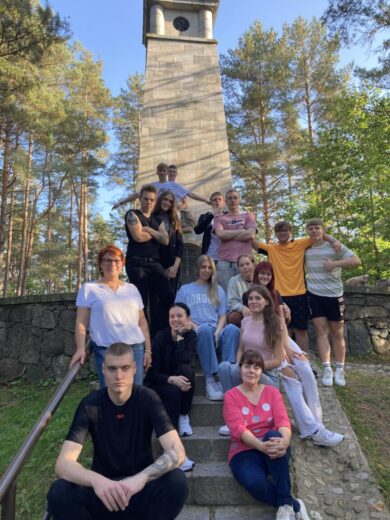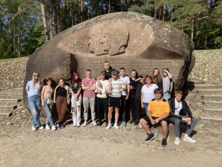Saulėtą rugsėjo 28 dienos rytą būrys dvyliktokų ir keletas vienuoliktokių išvyko pakeliauti po Anykščių kraštą. Anykščių kraštas – tai Antano Baranausko apdainuotas šilelis, Jono Biliūno „Laimės žiburys“, vienintelis Lietuvoje medžių lajų takas. Visus šiuos objektus aplankėme. Dar prisiminėme mūsų didvyrius lakūnus Darių ir Girėną, perskaitėme Puntuko akmenyje iškaltus jų žodžius lietuvių tautai. Aplankėme ir Antano Vienuolio-Žukausko memorialinį muziejų, jo kapą. Ekskursiją smagiai užbaigėme ant Kalitos kalno, vasaros rogučių trasoje. Su mumis važiavo ir smagiai laiką leido Ąžuolo tėtis ir Gintarės mama. Ekskursija likome patenkinti visi, grįžome su puikiomis emocijomis ir gera nuotaika.