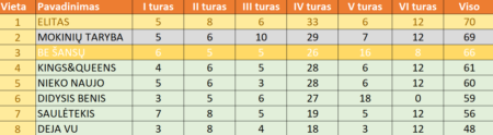 Greitai prabėgo paskutinė kovo mėnesio savaitė, o išeinant pavasario atostogų privalu susirinkti ir paskutiniam šių metų žaidimui. Kova viso žaidimo metu vyko išties įnirtinga. Po kiekvieno turo keitėsi pirmaujančios komandos. O finišas buvo nepakartojamas… Žaidimo metu kilusi idėja paįvairinti žaidimą, organizacijai (NATO) įvardinti pateikta užuomina į šią dieną (suprask – kovo 29 d.), leido komandoms pelnyti 12 taškų. Pirmavę „DIDYSIS BENIS“ komanda, greičiausiai iš jaudulio, užrašė neteisingą atsakymą, gavo 0 taškų bei liko šeštoje vietoje. Minimalia persvara, antrą savaitę iš eilės nugali „ELITAS“, aplenkę „MOKINIŲ TARYBOS“ komandą. Trečios liko ankstesnių dviejų žaidimų nugalėtojos „BE ŠANSŲ“.