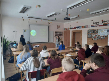 Nuo lapkričio 29 dienos Akmenės gimnazijos 5-12kl. mokiniai pažindinosi su klimato kaita, Europos Žaliuoju kursu. MEPA jaunoji ambasadorė Gabija bei Jaunimo Europos komandos narė Rusnė parengė linksmas pamokas moksleiviams, kuriose jaunimas atsakinėjo į žaidimo klausimus, išklausė paskaitos, sprendė užduočių lapus ir dalyvavo viktorinoje. Aktyviausi bei daugiausiai žinantys buvo apdovanoti saldžiais prizais. Taigi, mokiniai buvo puikiai pasiruošę sutikti gruodžio 11-ąją – Europos Žaliojo kurso dieną!