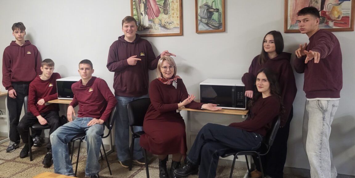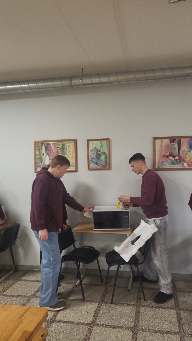 pirmasis pirkinys – mikrobangų krosnelės. Projekto dalyviai, kartu su visa gimnazijos