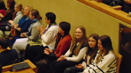 Lietuvių tauta ir valstybė vėl atgimė iš kalbos. Šių metų lapkričio 17 dieną buvome su kolege Jūrate Mikalauskiene ir Akvile Kulvinskaite (3g), Deimante Bagavičiūte (2g), Andrea Povilaityte (1g), Samanta Rasiukevičiūte (1g), Urte Novogreckaite (7b) 650 gimnazistų ir mokytojų būry Seime. Sutikome būrelius iš visų rajono gimnazijų. Gražus renginys, ilgo kelio vertas ir dėl dokumentinio filmo premjeros, ir dėl istoriko dr. Algimanto Kasparavičiaus pranešimo, ir dėl savo patirtimi pasidalijusių žmonių: kalbėjo LRT sporto komentatorius Rytis Kazlauskas, VU studentė poetė Mūza Olimpija Svetickaitė, viena inovatyviausių lietuvių kalbos mokytojų Vaida Ambrasaitė, populiarus lietuvių vaikų rašytojas Tomas Dirgėla, tarptautinių apdovanojimų pelniusi aktorė Aistė Diržiūtė ir laidų vedėjas, filmų garsintojas Marijus Žiedas. Su kasdiene švente, kur bebūtumėte, šakninės ir globaliosios Lietuvos lietuviai.