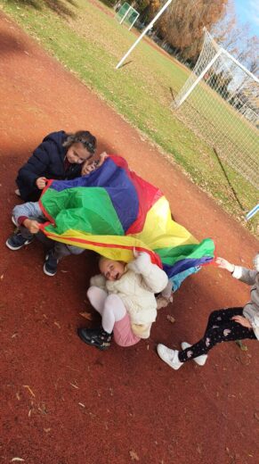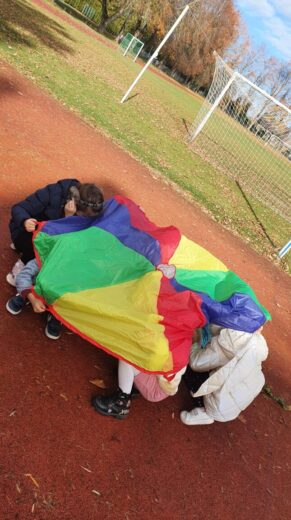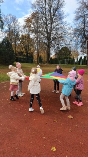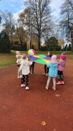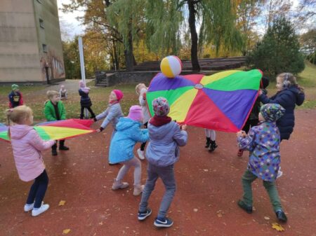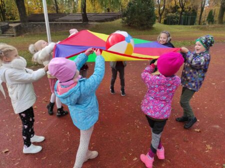 Spalio 12 d. visuomenės sveikatos priežiūros specialistė kartu su Akmenės gimnazijos 1b klasės mokiniais dalyvavo grūdinimosi pamokoje. Lauke žaidė su parašiutais, kamuoliais, įvairius žaidimus ir mėtė skraidančią lėkštę. Žaisdami mokinosi dirbti komandoje, nesipykti ir palaikyti vienas kitą. Pamokoje buvo panaudotos priemonės įsigytos iš projekto „Sveikatos kabinetų mokymo įstaigose aprūpinimas metodinėmis priemonėmis” lėšų.