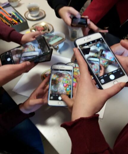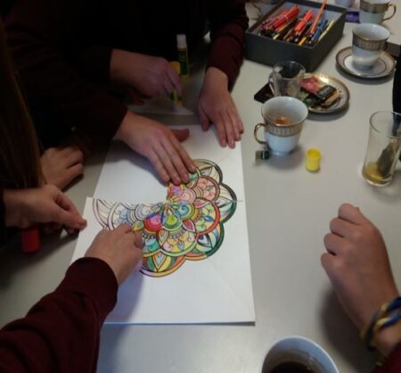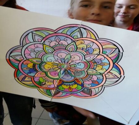 Darbas grupėje, bendros mandalos piešimas.