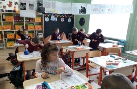 Susidariusi situacija apribojo veiklų galimybę. Apsilankyta ne kartą visose pradinėse klasėse. Psichologė ir soc. pedagogė kalbėjosi su vaikais, piešėme jausmus, atlikome laimės auginimo pratimus, įvairias užduotis pateikdavome savarankiškai veiklai klasėse. Vaikai matavo savo emocijas, spalvino emocijų puodelius, kalbėjome apie baimes, apie tai kaip emocijos mums padeda ar trukdo. Paskutinę mokslo dieną visos pradinės klasės gavo dovanas. apdovanotos relaksaciniais kamuoliukais, kuriuos pamaigius galime nusiraminti, kiekviena klasė gavo albumėlį – gerų darbų aprašymams ir užduočių rinkinius, kur kiekvienas vaikas galėjo atlikti jam skirtą užduotį.