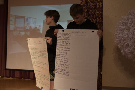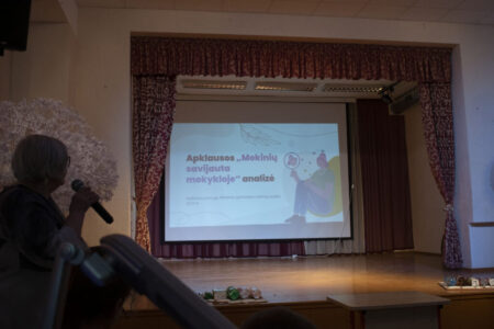 Girdžiu Jūsų klausimą kas?  Pavyko džiaugtis, kad galime mokytis ir mokyti kitaip, šiuolaikiškai. Renginio pradžioje romantiškai nuteikė mokytojos Ritos filmukas apie poezijos ir gamtos susiejimą, mėgstamos vietos atradimą, kur tu gali skaityti eiles, savo pasirinktas eiles. Per tris pamokas supratome, kad matematika gali būti – dovana, tik reikia apskaičiuoti jos plotą ir  išmintingai supakuoti. Na o chemiją integravus su menais ir  biologija galima pasigaminti sau dovanas –  augalo atspaudą ant gipso,  prieš tai sužinojus, jo sudėtį, savybes, panaudojimo galimybes. Penktokų tyrimas „Cukraus kiekis gaiviuosiuose gėrimuose“ vizualiai parodė, kiek kokiame gėrime yra pridėtinio cukraus. Griežtoji mokslininkė Gabija visus supažindino, kas gi gali būti, jei vartosi per daug cukraus. Sugebėjome net Kahutą iš technologijų sužaisti, susipažinti su žinių gilinimo programėle „Actionbound“. Išaiškėjo,  kas 6b klasėje yra geriausieji ir kaip jiems tai pavyksta, tėvai papasakojo,  kaip veikia nuolat užsuktas laikrodėlis. Tikybos mokytojas pristatė: “Kokia yra šiuolaikiška tikybos pamoka“. O jau anglistės, Dovilė ir Vaida, vaikus nudžiugino „Medžiokle gamtoje“ – tai angliškų žodžių – asociacijų ieškojimas, susiskirstę komandomis vaikai lakstė po pievas voro ieškodami, ar kokio apvalaus ar pailgo daikto. Dešimtokai filmą žiūrėjo ir aptarimą darė „Pasaulio kavinės“ metodu. Įrašą padarė, generavo idėjas, dalijosi nuomonėmis. Tikrai šauniai padirbėjo.  Puikiai simetriją ir asimetriją pristatė dešimtokai. Ieškodami pavyzdžių visą miestelį išvaikščiojo. Indrė, papasakojo apie netradicines pamokas įvairiose erdvėse ir šį rytą buvo  aplankiusi tris objektus ir išmokė vaikus „vyriškai“  išmatuoti medžių aukštį. Biologijos mokytoja Irena patarė, kaip rasti balansą tarp darbo ir poilsio. Daug šaunuolių buvo apdovanoti padėkos raštais už pasiekimus konkursuose ir olimpiadose.  Taigi ir vėl mums pavyko išgirsti, pamatyti, susitelkti, sudominti, suprasti, draugauti, patikėti, kad mes galime.
