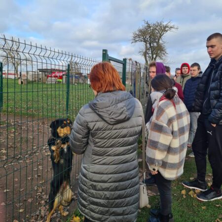 Vakar, spalio 27 d., vykome į Šiaulių Letenėlės prieglaudą, įsikūrusią Sneigių kaime. Džiaugiuosi mūsų jaunimu – 11- okais (auklėtoja Judita Puzonienė), kurie pramogas iškeitė į išvyką ir pagalbą gyvūnams, o savo iniciatyva surinko papildomai dar 75 eurus. Iš viso surinkome ir atidavėme prieglaudos vadovei Ingridai Butkutei 175 eurus. Mokiniai noriai pasisiūlė padėti vedžioti šunis, prinešti vandens. Būtume buvę gal ir iki vėlaus vakaro, bet augintiniai savo dubenėliais davė ženklą, kad jau metas jų maitinimui.