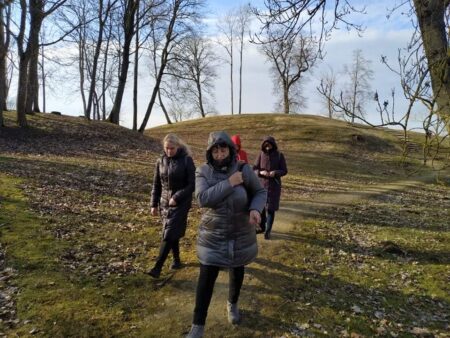Taip vadinosi pavasarinė (03-02) mokytojų išvyka, kurios tikslas buvo pasidalinti gerąja patirtimi ir pasimokyti vieniems iš kitų. Vis daugiau mokiniams organizuojame integruotų patyriminių veiklų kitose erdvėse. Šį kartą paieškojome integracinių ryšių ant Gyvolių piliakalnio, tik mokiniais tapo į išvyką susirinkę mokytojai. Kodėl Gyvolių? Piliakalnis gražiai sutvarkytas, šalia upės, apipintas padavimais… Važiuoti netoli, o pabuvoji jau dviejuose skirtinguose rajonuose ir apskrityse. Važiuodamas taip pat gali prasmingai išnaudoti laiką: telefone išspręsti testą ir pasitikrinti savo žinias. Tą ir darė mokytojai – bendradarbiaudami mokėsi. Aktyviai dalyvavo įvairių dalykų pamokose: skaičiavo pušų amžių, medžio aukštį, mokėsi atpažinti įvairių rūšių kerpes, ištirti oro užterštumą, iš gamtoje esančių ženklų nustatyti pasaulio kryptis, kurti pasakojimus, trumpai juos pristatyti užsienio turistų grupei ir t. t. Grįždami namo, reflektavo ir dalijosi savo patirtimis. Nepamiršo ir kompetencijų – balsavo, kurios buvo ugdomos vykdytose veiklose. O svarbiausia – džiaugėsi bendryste ir gražiu pavasariu.