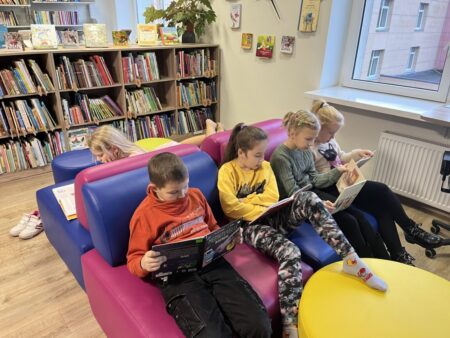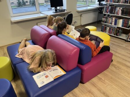 Skaitymas mokymosi procese užima ypatingą vietą. Kaip užkrėsti vaikus skaitymu? Ogi – skaityti! Taip ir atsitiko kiekvieną lapkričio mėnesio penktadienio pirmą pamoką. 2b klasės mokinukai gimnazijos bibliotekoje rinkosi knygas, skaitė, atliko bibliotekininkės R. Augustinienės paruoštas užduotis. Mokėmės rišliai ir sklandžiai perskaityti tekstą, suprasti pagrindinę mintį, temą, veikėjų charakterius.