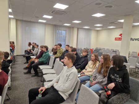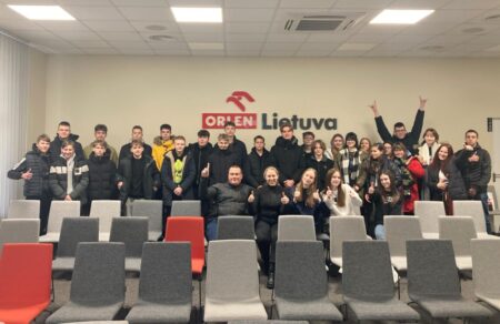 Šaltokas sausio 26-osios dienos rytas, bet trisdešimčiai 9-okų tai nė motais… Šiandien mes turėsime galimybę apsilankyti vienoje didžiausių mūsų šalies mokesčių mokėtojų teritorijoje – „ORLEN LIETUVA“ gamykloje, Juodeikių kaime.