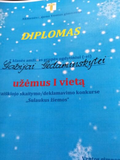 Gruodžio 1 dieną sudalyvavome raiškiojo skaitymo/deklamavimo konkurse „Sulaukus žiemos“. Mums sekėsi! Mūsų šaunuoliai Gabija, Adamas, Karina, Emilis, Kajus ir Erlandas.