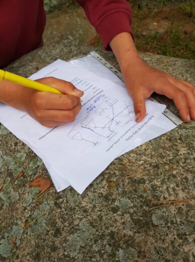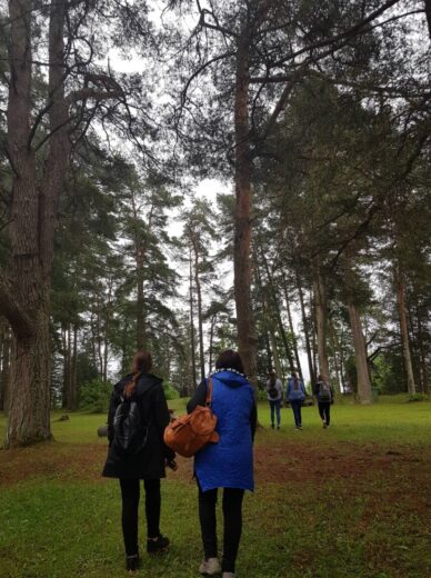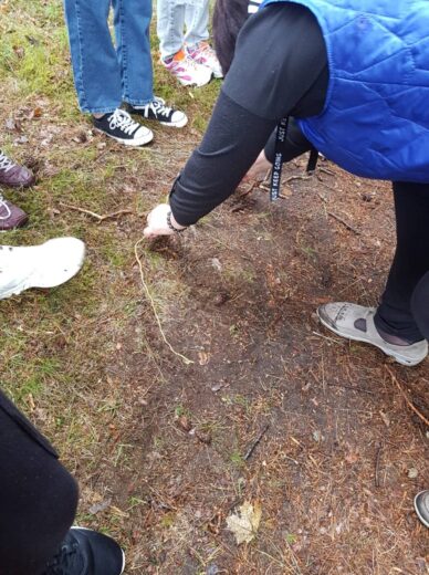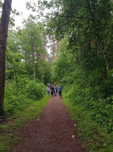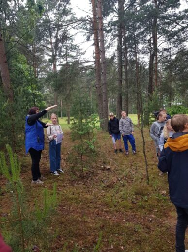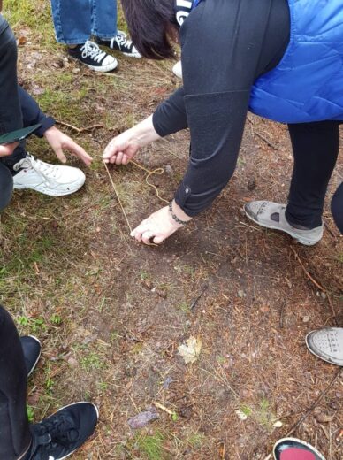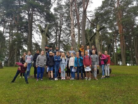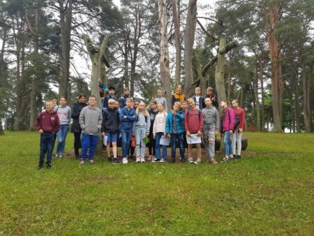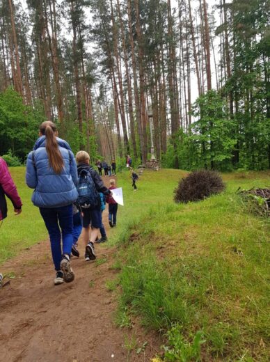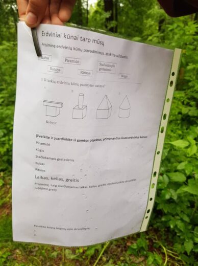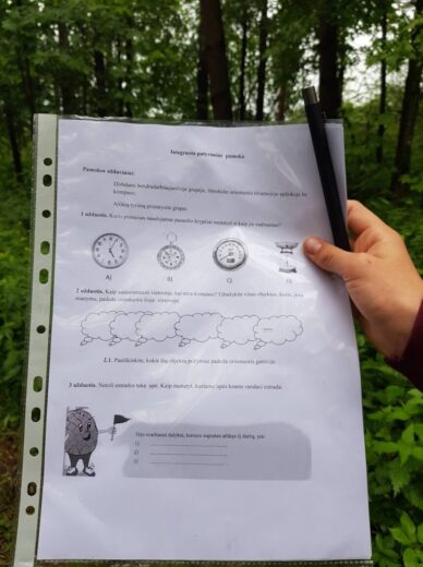 5a ir 5b klasės mokiniai su biologijos mokytoja Irena Zubavičiene ir matematikos mokytoja Erika Sondiene ėjo į pušyną. Ten mokiniai atliko nurodytas matematines bei gamtos ir žmogaus užduotis. 7 spektro spalvas reikėjo sudėlioti iš pušyne atrastų augalų lapelių, žiedelių. Parašyti, kaip galima atpažinti pasaulio kryptis be kompaso. Mokiniai turėjo rasti 6 erdvinius kūnus bei apskaičiuoti skruzdėlės greitį. Refleksijai turėjome pasakyti po 3 svarbiausius dalykus, kuriuos išmokome atlikę nurodytas užduotis. Atsakymų buvo įvairiausių. Penktokams ši maža kelionė labai patiko. Tikrai dar kartą ją pakartotų.
