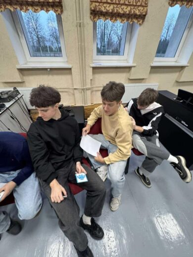 Mokinių tarybai – darbingas penktadienis! VU teisės absolventas Šarūnas Grigonis (daugelio jaunimo organizacijų narys, daug bendraujantis ir dirbantis su jaunimu) pravedė mokymus apie komandos formavimą. Smagu, kad į šiuos mokymus aktyviai įsijungė ir Ventos bei Ramučių gimnazijų mokinių tarybų komandos ir jų kuratorės Sandra ir Regina.