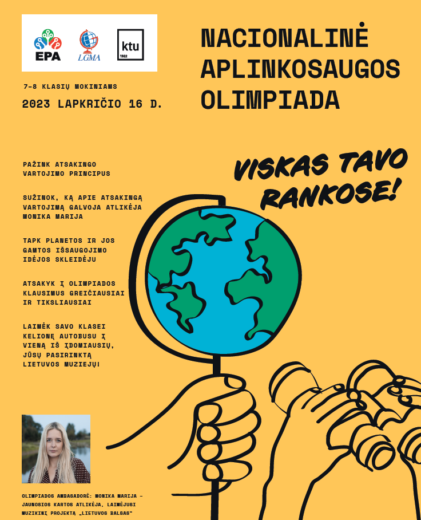 Akmenės gimnazijos septintokai ir aštuntokai lapkričio 16 d. prisijungė prie tūkstantinės armijos smalsuolių – nacionalinės aplinkosaugos olimpiados, kuri šiemet jubiliejinė – 10-oji. Šiemetinė olimpiada apėmė pačias įvairiausias temas, pradedant požiūriu į daiktus ir energijos šaltinius, įsigyjant daiktus, domėjimąsi, iš ko tie daiktai pagaminti iki to ar jie perdirbami ir ar gali būti pataisyti. Atsakingo vartojimo tema olimpiadoje apima ir daiktų gyvavimo ciklo ilginimą bei jų taisymą, o taip pat perdavimą į antras rankas, panaudotų daiktų įsigijimą, atsakingą atliekų šalinimą ir kitus panašius klausimus. Visa tai papildo ir Monikos Marijos įžvalgos apie atsakingą vartojimą, kuri buvo šių metų olimpiados ambasadorė.
