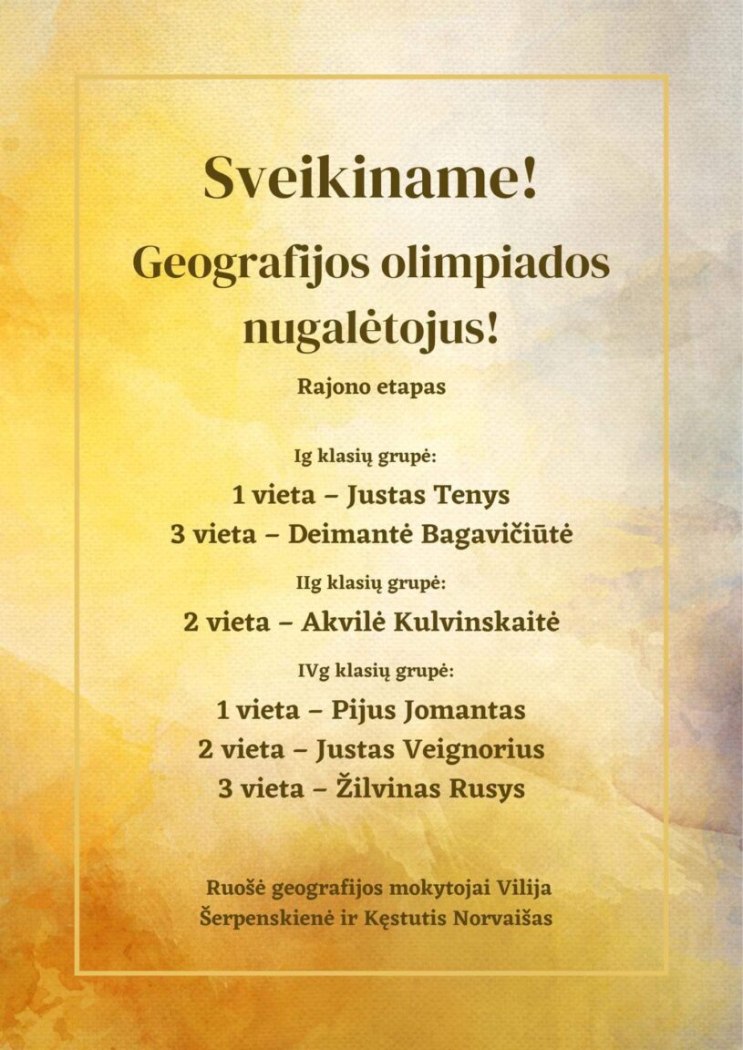 Sveikiname geografijos olimpiados nugalėtojus rajono etape!