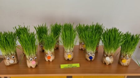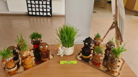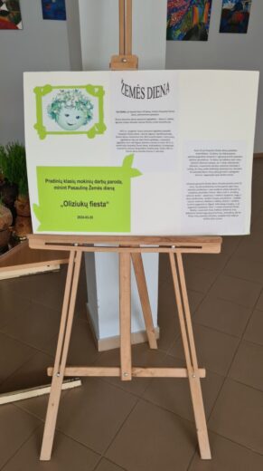 Mūsų gimnazijoje Žemės dieną pradinių klasių mokiniai ir jų mokytojos mini surengdami savo darbų parodas. Tik visada pasirenkame vis kitą idėją, mintį, sumanymą.