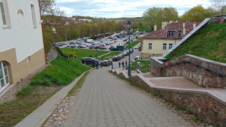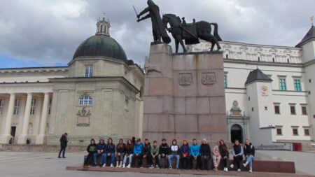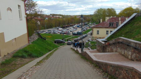 Į Vilnių galima važiuoti nors šimtą kartų, bet pamatyti, aplankyti vis kitas vietas. Mūsų gimnazija drauge su TOLI remia projektą ,,Dienoraščio galia liudyti“. Tai todėl jau antrąkart per šiuos mokslo metus septintokai su auklėtoja Kristina Jomantiene važiavo į sostinę paieškoti Akmenėje gimusios ir augusios, o po visų odisėjų Vilniuje beveik penkerius metus gyvenusios Pasaulio Tautų Teisuolės Onos Šimaitės vietų. Daug žmonių rašo ir įsirašo į 700 metų gyvuojančio miesto istoriją, todėl pirmiausia ir prisėdome kunigaikščio Gedimino papėdėje, paskui apėjome universiteto kiemelius, šv. Jonų bažnyčią, pastovėjome po iš Kalvių atvežtu ir išaugusiu Daukanto ąžuolu, jo kiemelyje ir Atminimo lenta humanistei, Senųjų spaudinių bibliotekininkei ir kataloguotojai Onai Šimaitei. Prieš 121-erius metus Ji išėjo iš savo Akmenės, o Daukantas po savo svarbiųjų kelionių su visam sugrįžo į Papilę. Prieš penkerius metus Lietuvoje Daukanto vardu vadinosi 25 gatvės, o dar aikštės, kiemeliai, aplankyti tą balandžio 27 d. Bet mes einame ieškoti Savičiaus gatvės, kur gyveno tada Ona Šimaitė, iš bastėjos aikštelės matoma ir jos vardo gatvelė šalia Č. Milošo laiptų. Irgi tinkama kaimynystė žinant apie tik Šimaitei suprantamu konspiraciniu būdu per pusantrų metų iš Paryžiaus atsiųstą Milošo ,,Gimtąją Europą“. Daug atpažįstamų sąsajų, kai perskaitome, atsimename, užsirašome, net kai spragtelim telefonu leisdamiesi Jos gatvele į Tymo turgų, kurio kitoje pusėje tiltelis per Vilnelę į Užupį, kur iš 40 Konstitucijos lentų dvi hebrajų ir jidiš kalba, dar žemaičių ir lietuvių, ir vis kita užsienio kalba. Klajosime siauromis gatvelėmis, kol vėl išeisime pro Onos gotiką iki Gedimino.