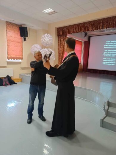 Spalio 4 dieną Akmenės gimnazijoje lankėsi svečiai iš Slovakijos – misionieriai broliai Peters ir Vladislav. Svečiai netradiciškai vedė pamokas pradinukams ir 6-8 klasių mokiniams. Pamokoje skambėjo giesmės, matėme vaidinimų ir išgirdome asmeninius svečių liudijimus. Nuo žaismingų istorijų mažiesiems iki labai asmeninių ir skausmingų patyrimų kelionėje link Dievo.