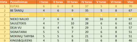 Taip galima apibūdinti ventiškių komandos „NIEKO NAUJO“ žaidimą paskutiniame rizikos ture. Prieš šį turą, vieninteliai, sugebėję užsidirbti papildomus 10 taškų iš Kretuono ežero, atrodė turėjo saugų, 5 taškų atstumą nuo likusių komandų. Deja… Gravitacija juos nubloškė žemyn labai skaudžiai. Kartu su dar dvejomis komandomis „BE ŠANSŲ“ ir „DIDYSIS BENIS“ leido „ELITUI“ triumfuoti trečiąjame žaidime. Na, o kas laimės paskutinį pavasarinį žaidimą – jau kitą savaitę, tuo pačiu metu.