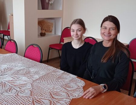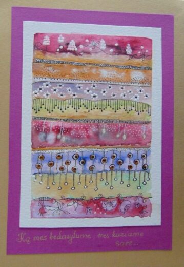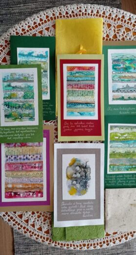 p.s. dailiai savo mintis galima ir išmegzti, kaip dažnai ir daro matematikos mokytoja Erika Sondienė (jos numegzta staltiesė jau ant muziejaus stalo), arba išpiešti: tą dieną dailių Rimos Mokusienės atvirukų apdovanotieji rado knygose.