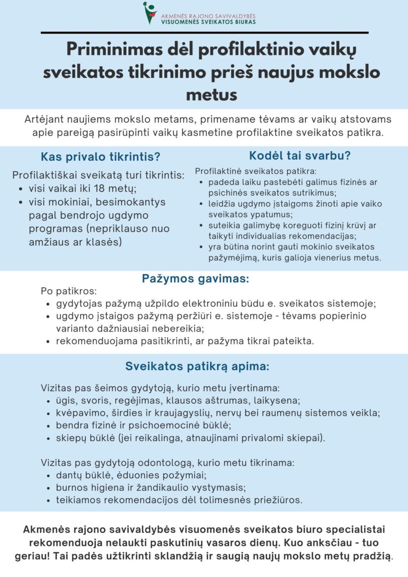 Priminimas dėl profilaktinio vaikų sveikatos tikrinimo
