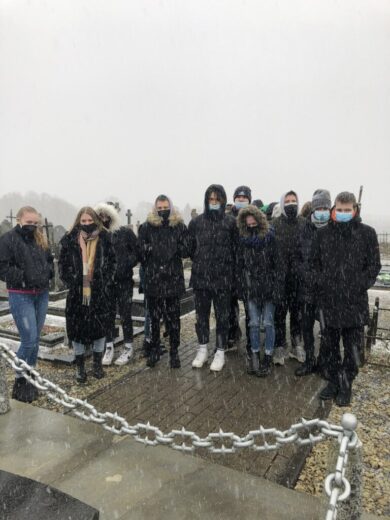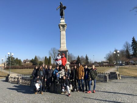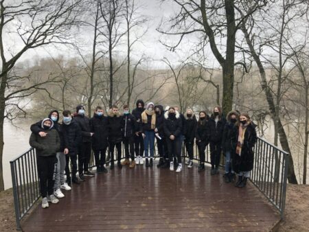 Nuotraukose 9b ir 9a klasės mokiniai. Vieni išlydėjo žiemą, kiti pasitiko pavasarį…