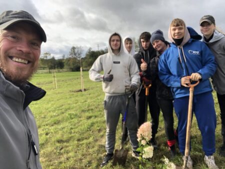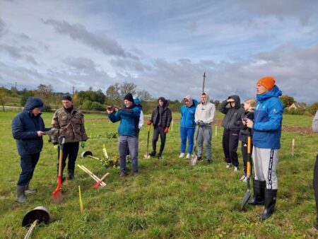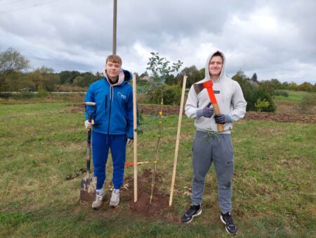 Už lango 2023 metų spalio 7 d. , šeštadienis. Vėjo gūsiai negailestingai talžo visa kas gyva. O mums nė motais. Pulkelis Akmenės gimnazijos mokinių pasiėmė kastuvus ir prisijungė į puikią talką – Šimtmečio parko sodinimą. Sužvarbę, pavargę po darbų, buvome pakviesti karštos arbatos puodelio ir nuostabiai skanių kibinų.