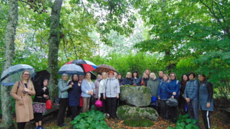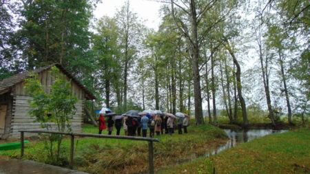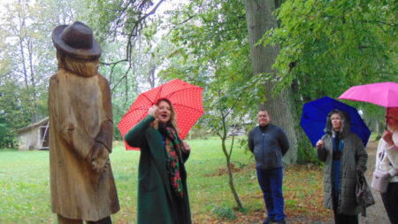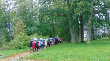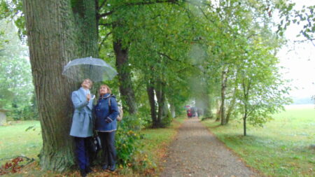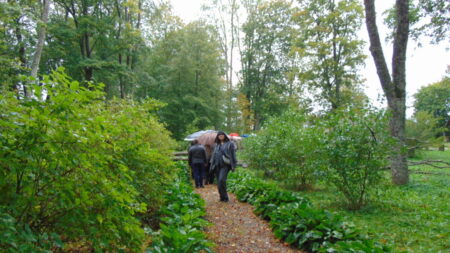 Mokytojai per lietų ir su lietum keliavo į seną dvarą, kur liepos, uosis, dūminė pirtis, auksiniai beržo pinigėliai byra į tvenkinį, dar žydi, klesti didžioji dvaro klomba, tik nakties audra liepos kamieną atskyrusi bloškė ant tako, ir šis muziejininkų rankomis pastumtas dar laukė talkos, kad taptų šiluma nors kitąmet didžiajame dvaro kambary. Kur tas parkas ir klasikinė alėja, jei ne Paragiuose, kur šeštus metus už Nikodemą Ivanauską ir jo dukteris kalba Sandra Sakalauskienė. Pasakoja ir leidžia per rankas 1861 metų gamybos šeivą, į kurią prisukdavo ataudų siūlų. Šeiva slydi, audėjų rankų ir laiko nugludinta, bet tvirta, gal iš šeivamedžio, kurio arbata, likeriu, gira ir nenusakomu gardumynu vaišino muziejininkė Sandra. Mitinio medžio, po kuriuo gyvena šventų medžių ir miškelių valdovas Pūškaitis, arbata ne tik gardi – ypatinga, gal ir barstukų sulauksim, kad su skalsa visko namuose užtektų. Dar teisingumo, sąžinės, gerumo. To ir linkėjo dvaro šeimininkė paskaičiusi ištrauką iš Marijos Lastauskienės romano „Iki mirties“. Lėto ir raiškaus skaitymo prabanga lietui už lango takus mazgojant, vėjui liepų šakeles mezgiojant…