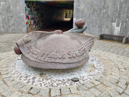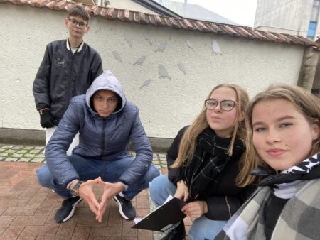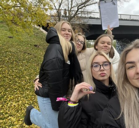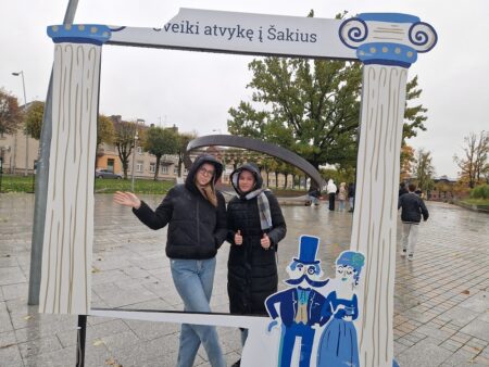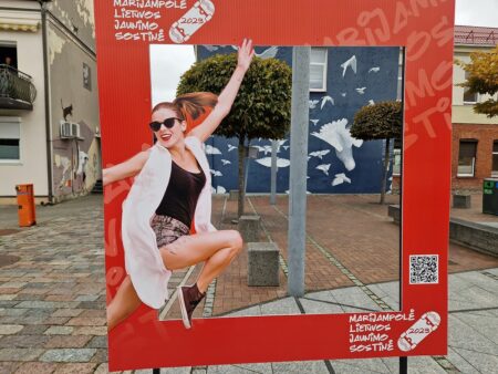 Marijampolė – septintas pagal dydį Lietuvos miestas (apie 36 000 gyventojų) yra paskutinė didesnė stotelė lietuviams, keliaujantiems į Europą per Suvalkiją. Neretai ir pats miestas vadinamas šių žemių sostine. Na, o nuo 2014 m. čia kasmet vykstantys meno simpoziumai, kurių metu keletas miesto centrinės dalies pastatų yra „aprengiami” čia atvykstančių menininkų, mums, iš kito Lietuvos galo atvykusiems – tikra naujiena. Kaip gidė Jurgita sakė, miestas jau dabar vadinamas ne tik kačių, bet ir Lietuvos gatvės paveikslų sostine. Šalia keliasdešimties meno kūrinių įsikūręs Poezijos parkas, kurio prieigose teka didžiausias Nemuno kairysis intakas ir 4 ilgiausia Lietuvos upė – Šešupė (297 km). Pusantros valandos orientacinis žaidimas Marijampolės gatvėmis pralėkė nejučia. Laikas pasistiprinti ir suktis namo, nes jau ir debesys pradėjo tamsėti…. Pakeliui dar aplankėme Šakių miesto kariljoną, bei prie Nemuno esantį Sudargo piliakalnį, kuris padarė išties didžiulį įspūdį. Deja, gamta nebeleido ilgiau pasigrožėti šiuo ir kitais šalia esančiais piliakalniai…. Bet kelias iš sūduvių žemių iki mūsų namų nebe toks ir ilgas – vos dvi valandos.