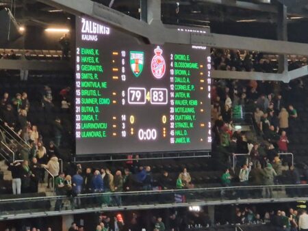 Praėjo beveik du mėnesiai nuo pirmųjų Eurolygos varžybų ir prisiminimų apie jas, o mes ir vėl Nemuno saloje – Kauno „Žalgirio“ arenoje. Varžovas šį kartą – žvaigždžių pripildytas „AS Monaco“ klubas su lietuviu D. Motiejūnu. Vėl sausakimša arena, vėl skanduotės ir dainos, bet, deja, talentas tą vakarą nugalėjo. Lyderio M. James vedami prancūzai nugalėjo traumų kamuojamą Kauno komandą.