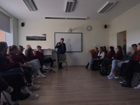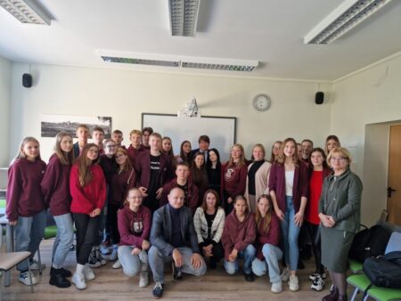 Ačiū savivaldybės merui V. Mitrofanovui ir jį atlydėjusiems svečiams – mero patarėjai Ingai Vismantienei ir Švietimo, kultūros ir sporto skyriaus vedėjui Dariui Rekiui už susitikimą, kuris kartu buvo ir pilietiškumo pamoka, raginanti mokinius atsakingai ir aktyviai dalyvauti mokyklos, vietos bendruomenės ir visuomenės gyvenime.