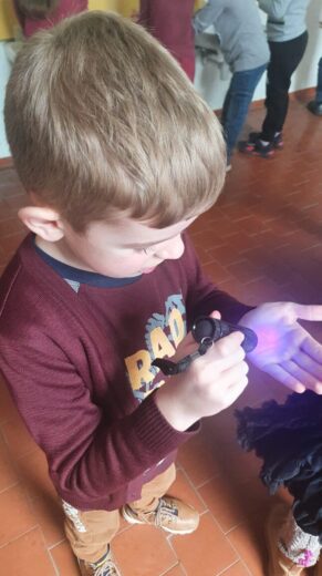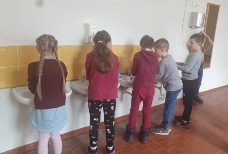 Akmenės rajono Akmenės gimnazijos 1-2 klasių mokiniams vyko pamokėlės apie asmens higieną, būtiną rankų plovimą ir švarą. Užsiėmimų metu išbandėme specialią pudrą, šviečiančią lemputę, kuri parodė, kad šiltas vanduo su muilu ir taisyklingi rankų plovimo judesiai gali pašalinti daugumą bakterijų ir apsaugoti nuo įvairių ligų. Užsiėmimuose naudojama priemonė iš projekto „Sveikatos kabinetų mokymo įstaigose aprūpinimas metodinėmis priemonėmis“ lėšų.