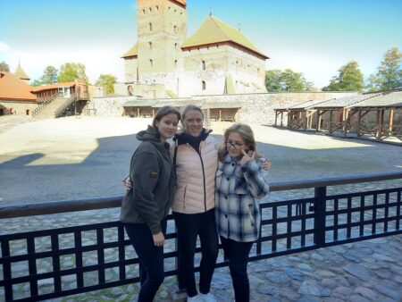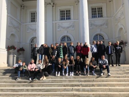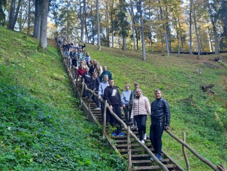 Spalio 7 d., penktadienį 8-10 klasių mokiniai su mokytojais K. Norvaišu ir I. Šiurkiene išvyko į Trakų istorinį-nacionalinį parką. Tai pirmasis nacionalinis parkas iš penkių, kuriuos esame pasiryžę aplankyti šiemet. Pirmoji kelionės stotelė – Užutrakio dvaro rūmai. Apie šį neoklasicizmo kūrinį, kuris kadaise buvo apie 800 ha ploto, vaizdžiai ir išsamiai mums papasakojo gidė Rasa. Vėliau vykome į pačius Trakus, kur apžiūrėjome Trakų pilį, jos kiemelį. Miestelyje auklėtojas paragino būtinai paragauti skanių kibinų. Paskutinė mūsų stotelė buvo Velnio duobė. Iš viršaus ji atrodė labai gili, o kol lipome laiptais ir kojas paskaudo. Nusileidę visi spėliojome kaip ji galėjo atsirasti. Buvo daug įvairių variantų. Tačiau geografijos mokytojas Kęstutis, papasakojo, kad tai ledyno palikimas. Nors yra ir kitų nuomonių.