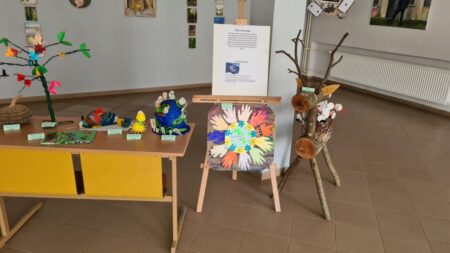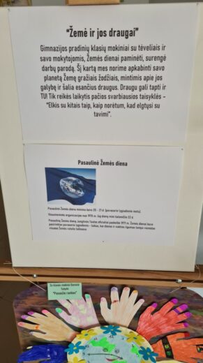 Pradinių klasių mokiniai su tėveliais ir savo mokytojomis surengė darbų parodą. Mūsų planeta Žemė išliks tik tuomet, jeigu mes ją saugosime, gerbsime ir globosime.